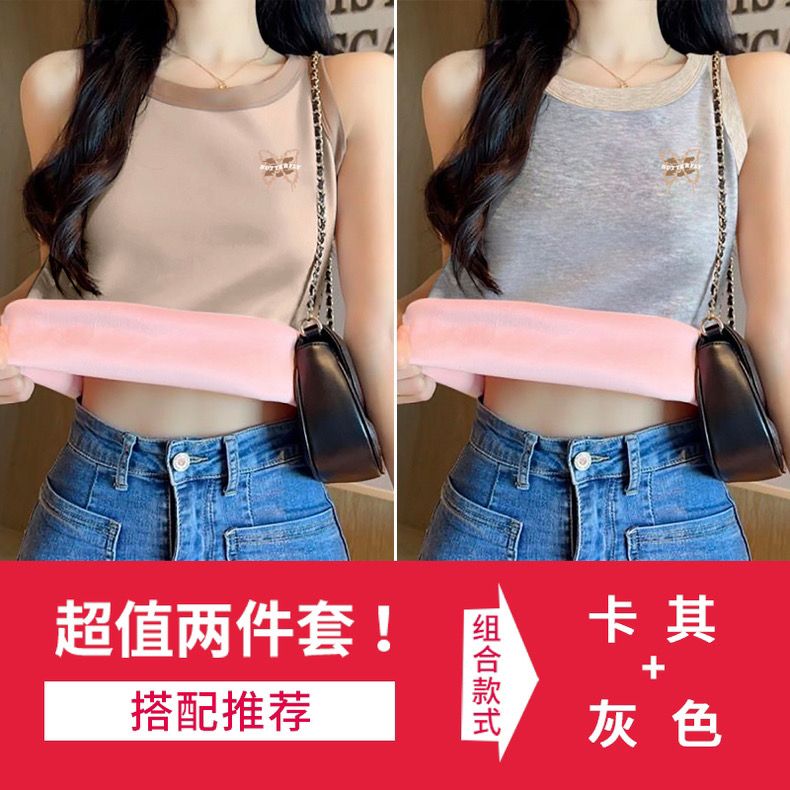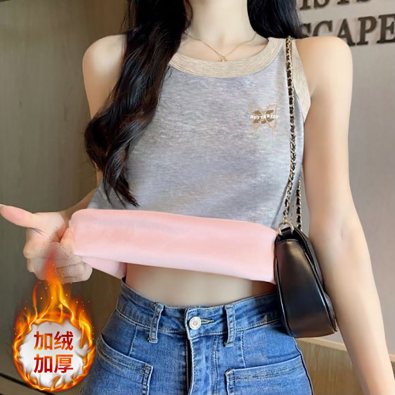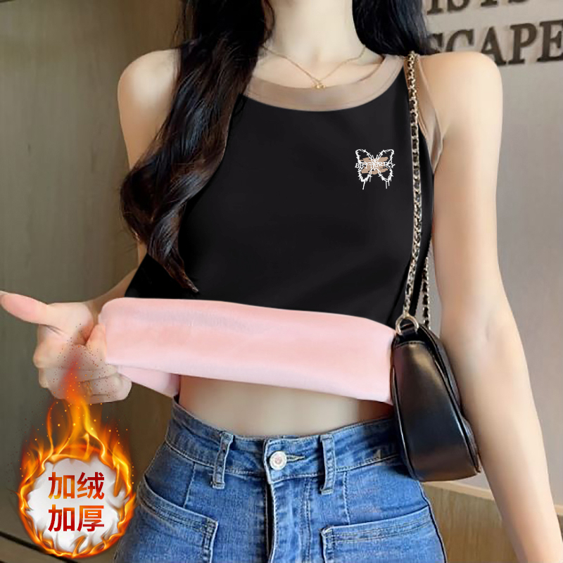 加绒加厚保暖背心女秋冬新款弹力修身内搭无袖打底衫上衣韩版吊带