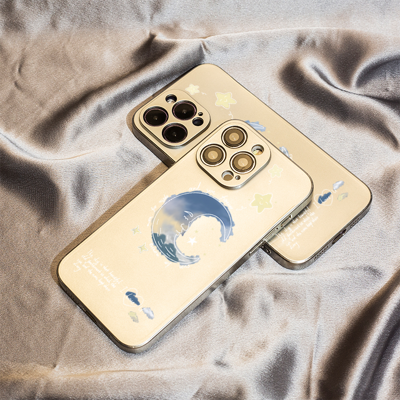 月亮晚安星适用苹果16保护套14plus电镀银iPhone15手机壳xs11全包xr情侣6s高级7g8新款12mini女se2软13promax