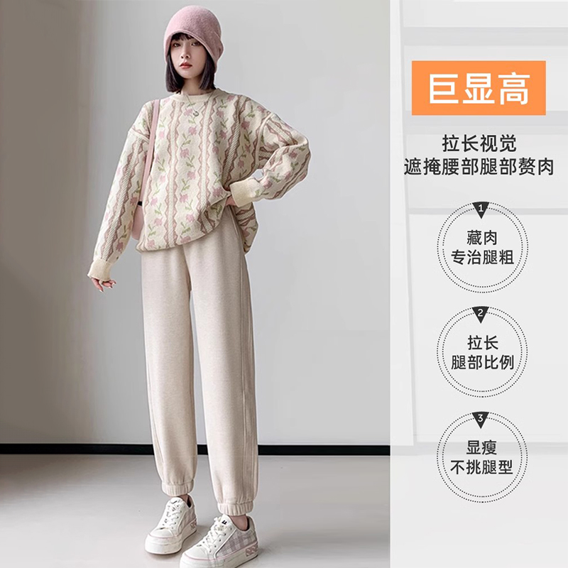 [高端欧棉]婧麒孕妇裤子秋冬款加绒加厚外穿运动裤托腹卫裤冬季装