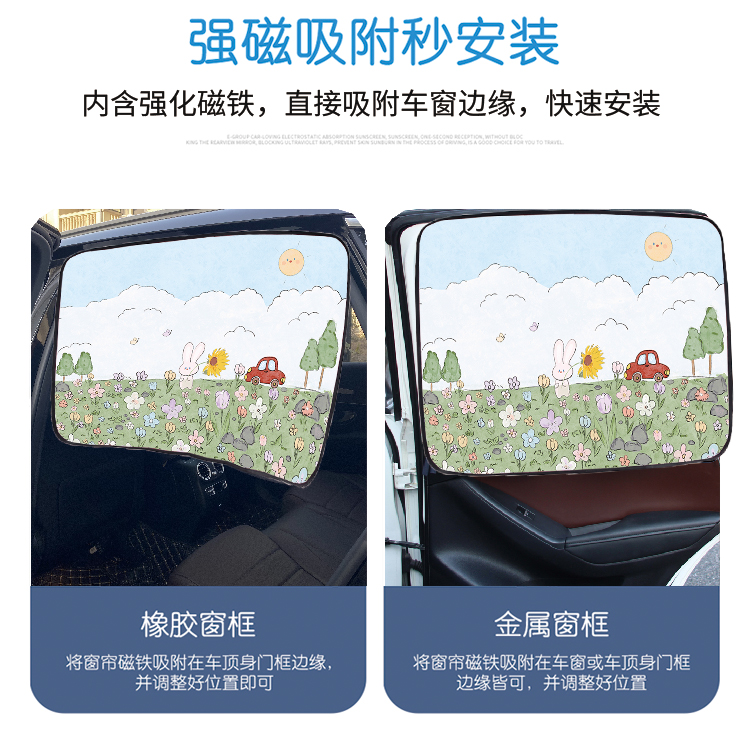 汽车遮阳帘卡通儿童遮光车窗防晒隔热神器磁吸式车帘车用宝宝窗帘