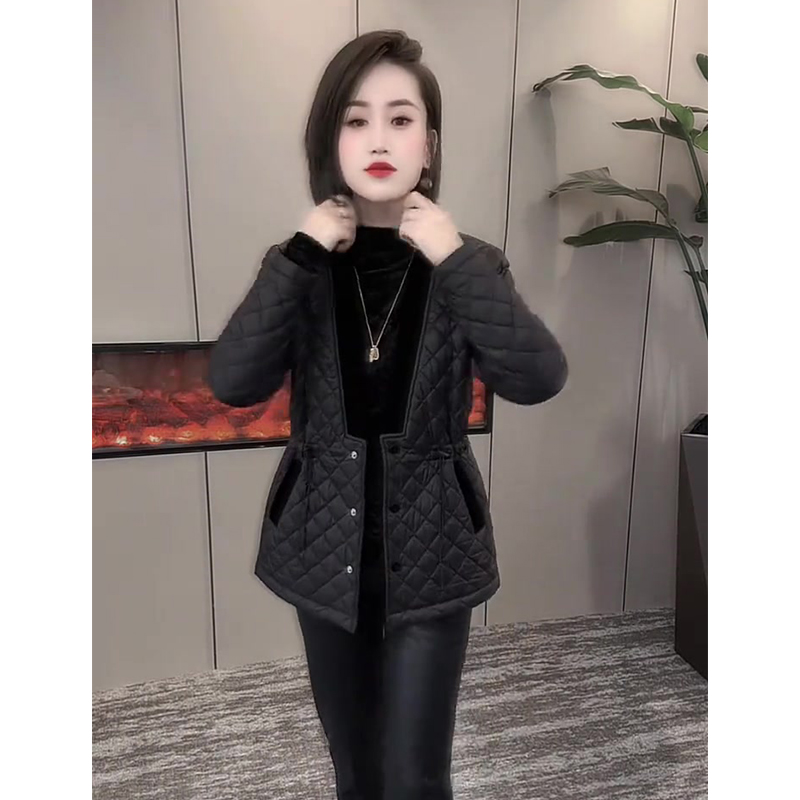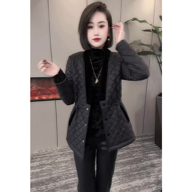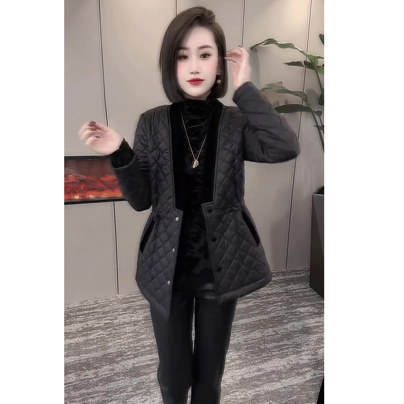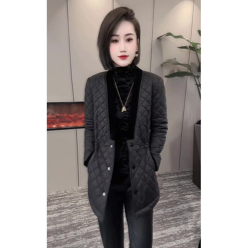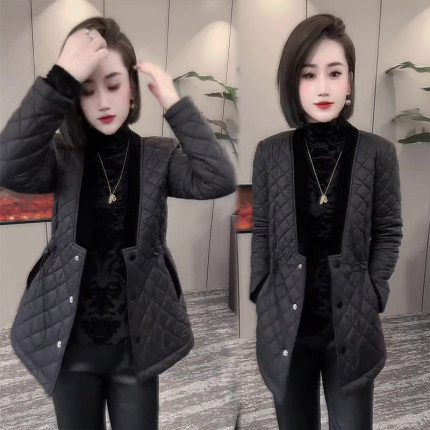 黑色时尚休闲百搭中长款棉服女2024冬季新款显瘦遮肉高级感棉袄潮