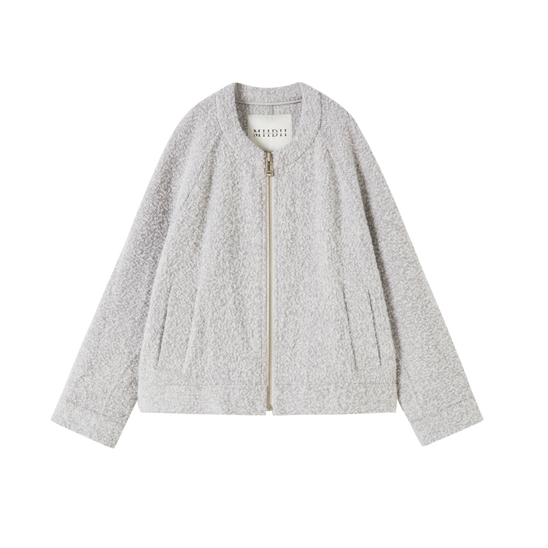谜底大衣女2025秋BOXYFIT简约百搭圆领羊毛混纺毛呢外套253MD1208