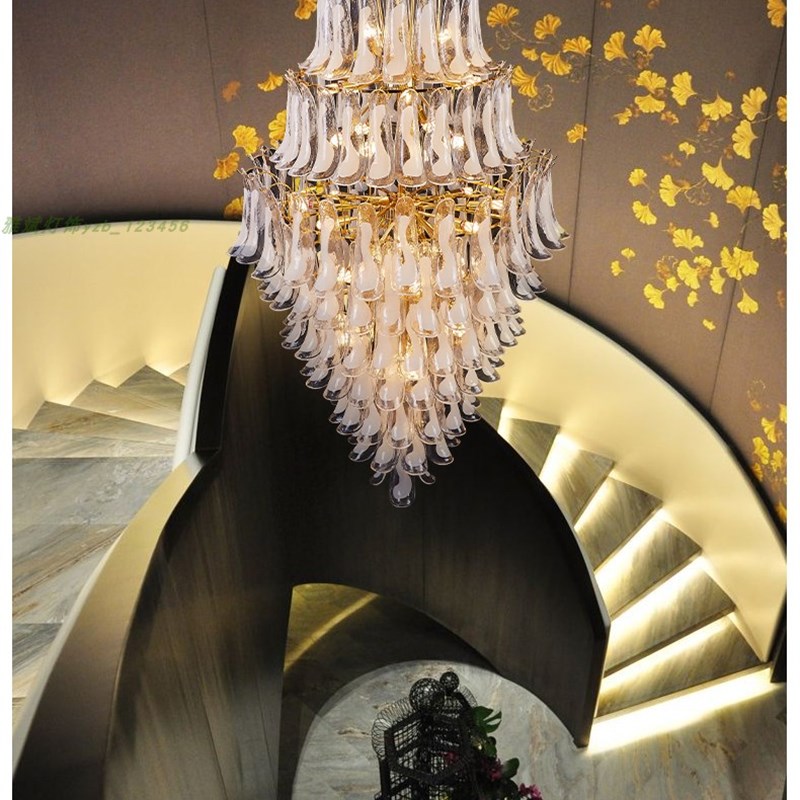 复式楼玻璃意大利别墅客厅灯轻奢后现代简约楼中楼大厅楼梯长吊灯
