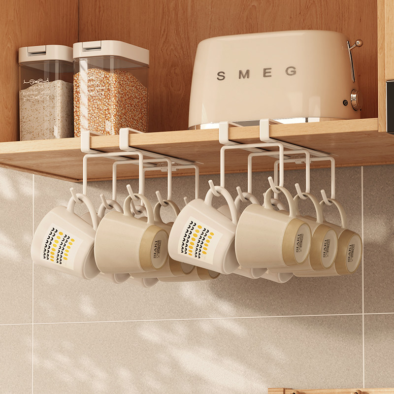 免钉夹板水杯子马克杯咖啡杯厨具小工具挂架悬挂茶杯收纳架置物架
