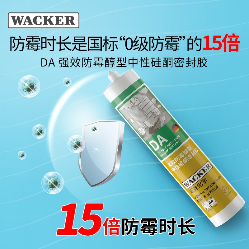 德国瓦克DA玻璃胶防水防霉厨卫透明硅胶美容胶马桶密封胶KB白色