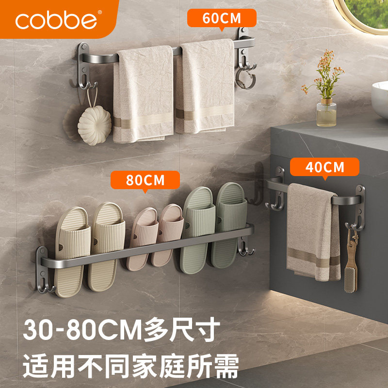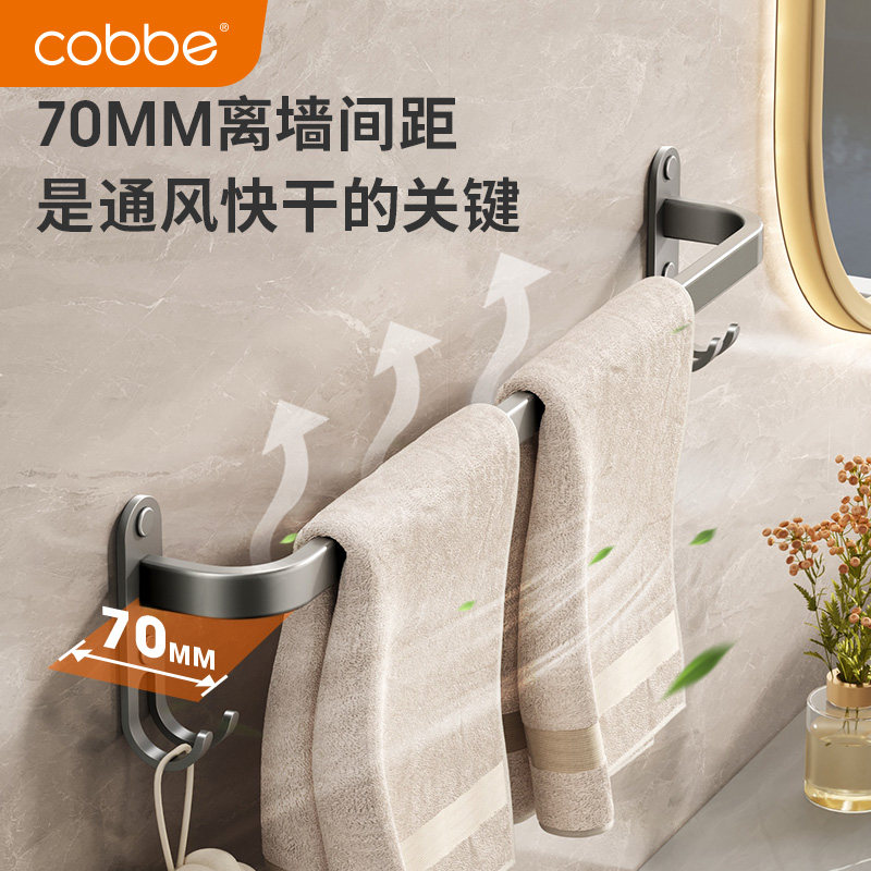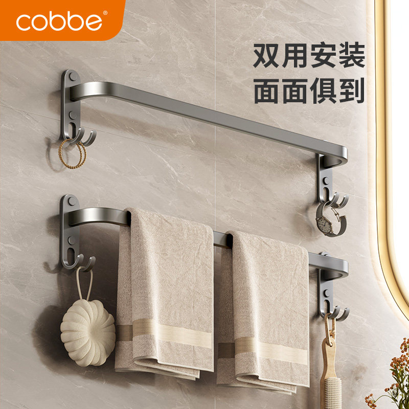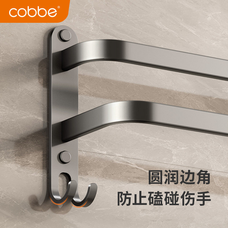卡贝毛巾架单杆免打孔浴室凉毛巾杆卫生间置物架子双层枪灰色挂杆