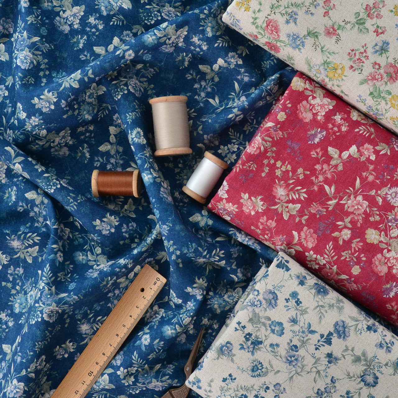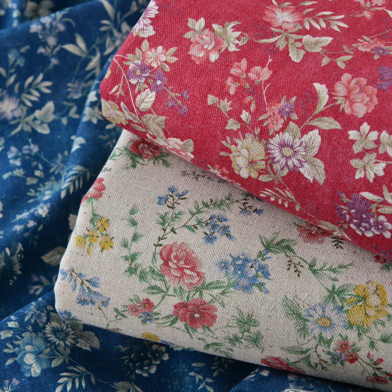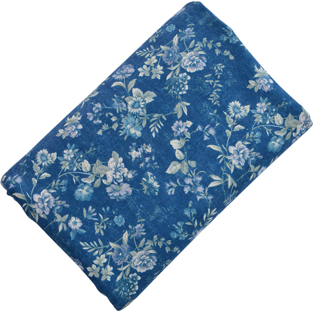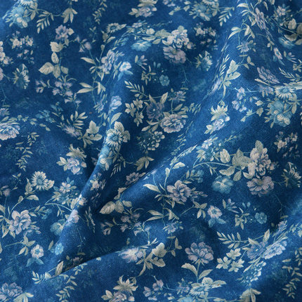 亚麻棉布料棉麻印花布加厚深蓝色纯棉面料中国风手工棉布碎花雅韵