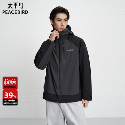 太平鸟男装 撞色拼接外套男冲锋衣户外工装连帽夹克男潮