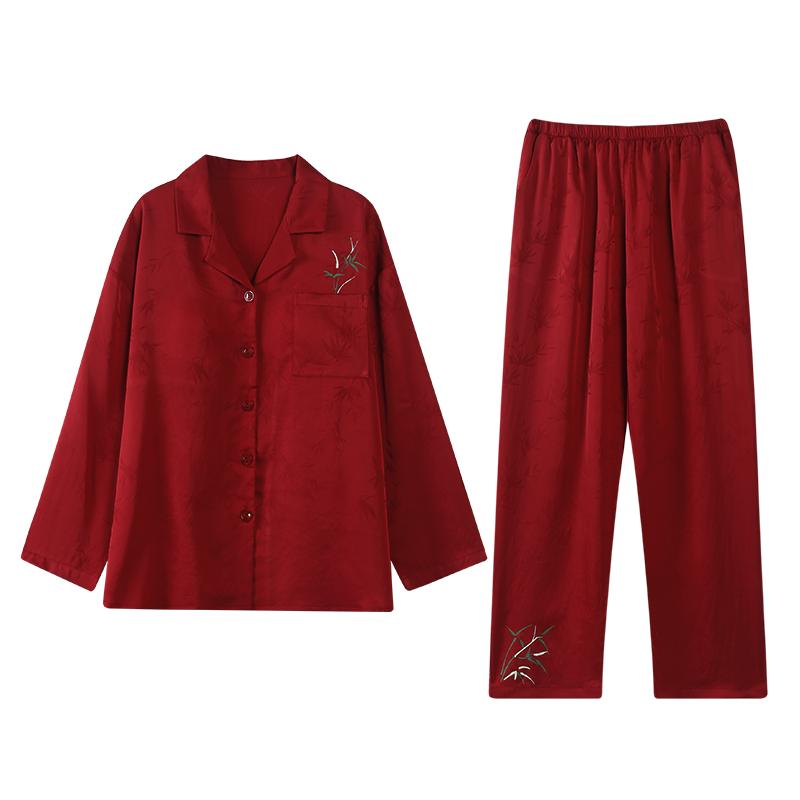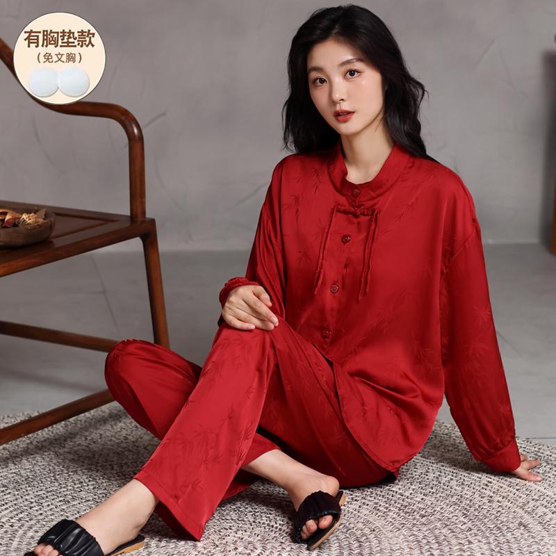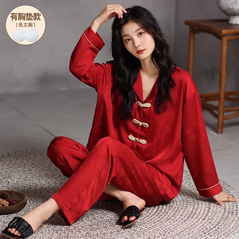 带胸垫红色睡衣女春秋冰丝防真丝绸套装2025蛇年本命年国风高级感