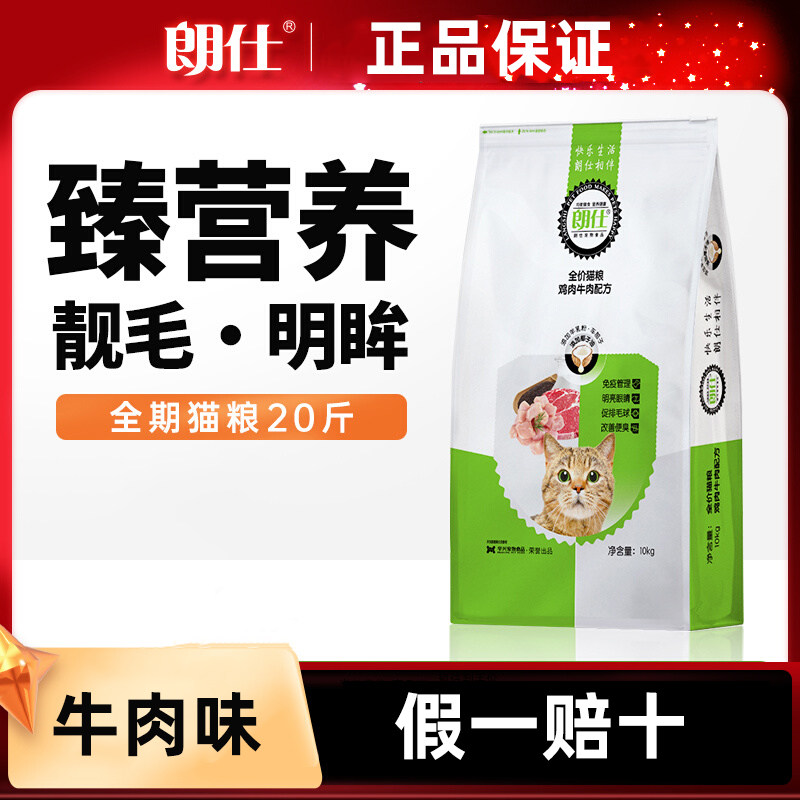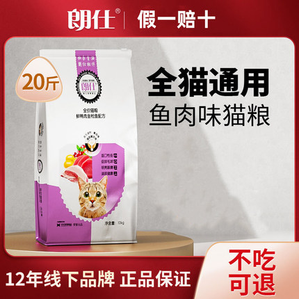 朗仕全价猫粮鲜鸭肉金枪鱼味10kg鸡肉牛肉味成猫幼猫通用粮20斤装