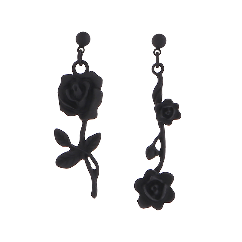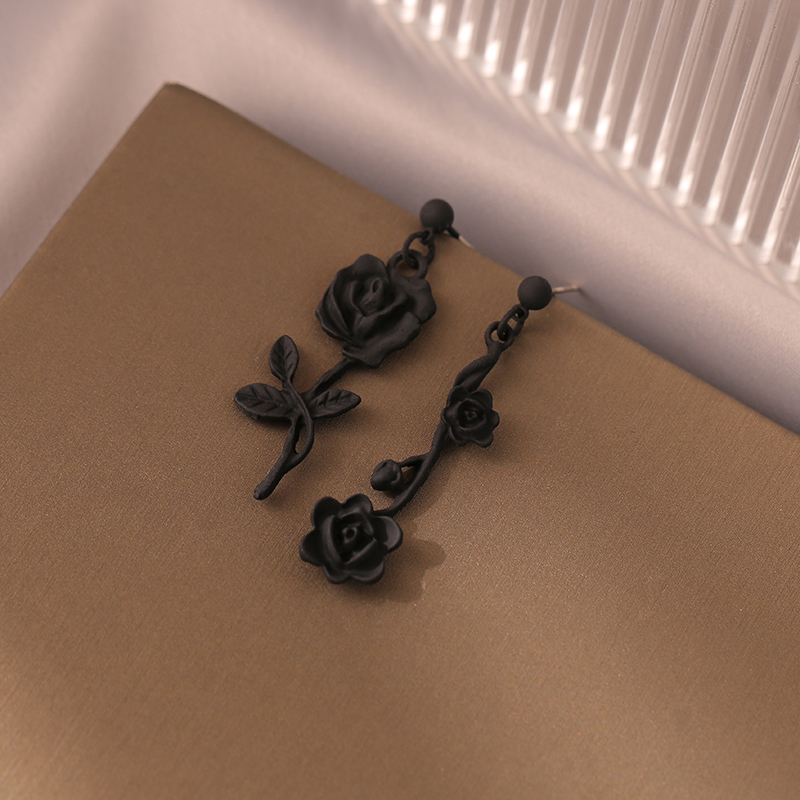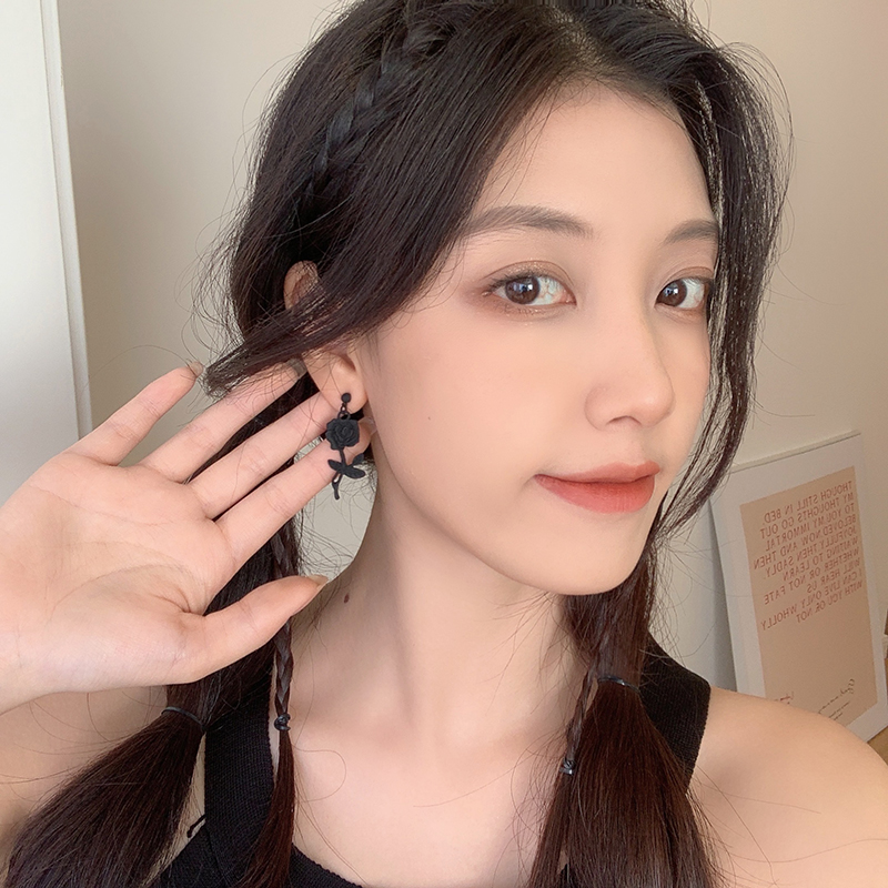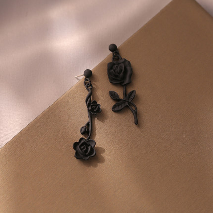 小众设计不对称黑色磨砂玫瑰耳钉气质高级感耳环蚊香盘无耳洞耳夹