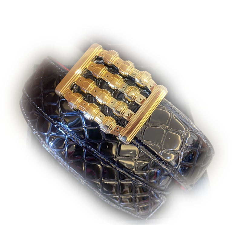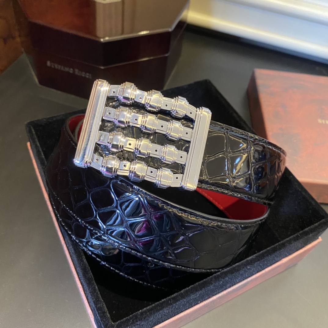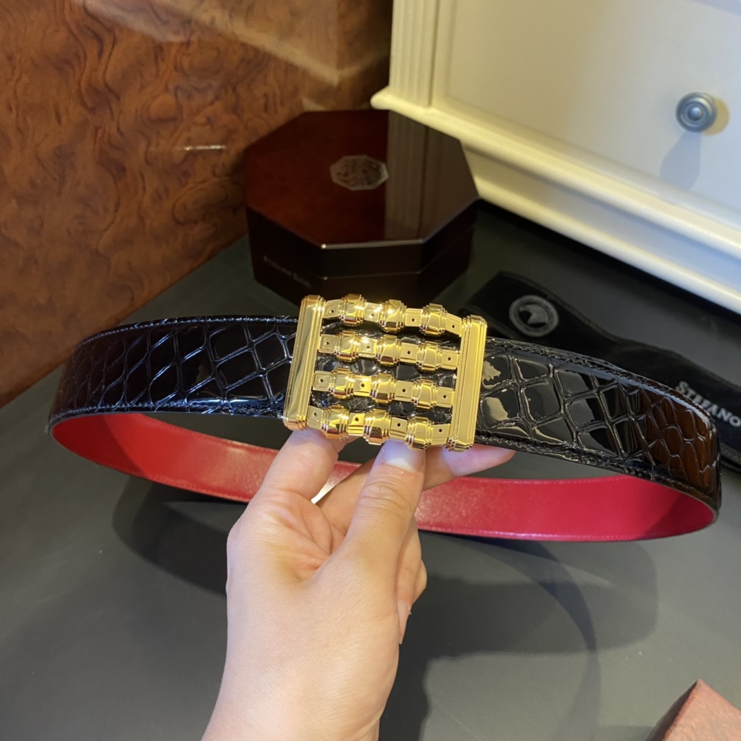史蒂芬皮带男 老鹰头算盘扣男士头层牛皮鳄鱼纹不锈钢扣腰带3.8CM
