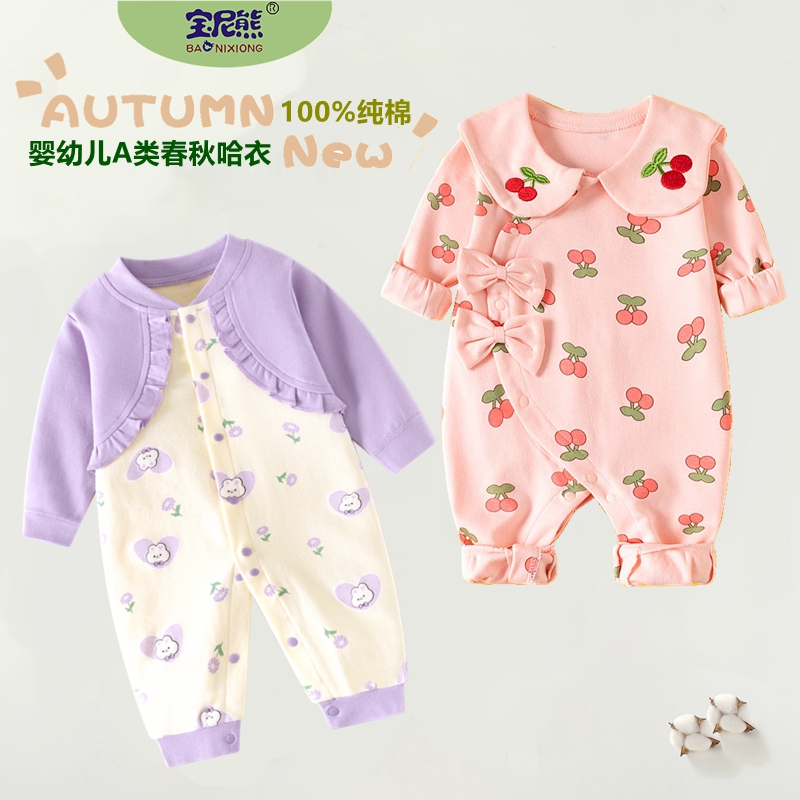 新生婴儿连体衣春秋款长袖薄款外出爬服宝宝初秋可爱超萌纯棉哈衣