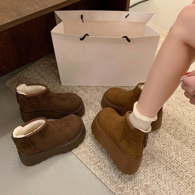 专柜厚底雪地靴女2025冬季新款复古保暖增高短靴小个子百搭棉靴子