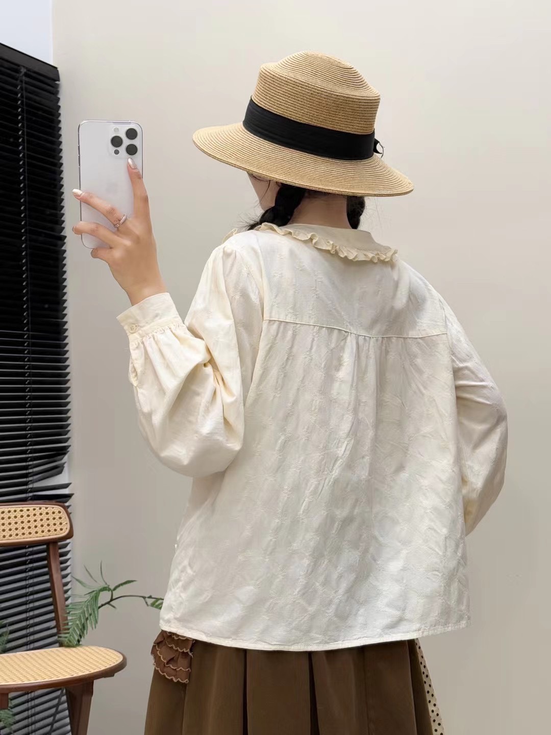 春季女装新款甜美森女系花边领纯棉套头宽松长袖衬衫女衬衣上衣潮