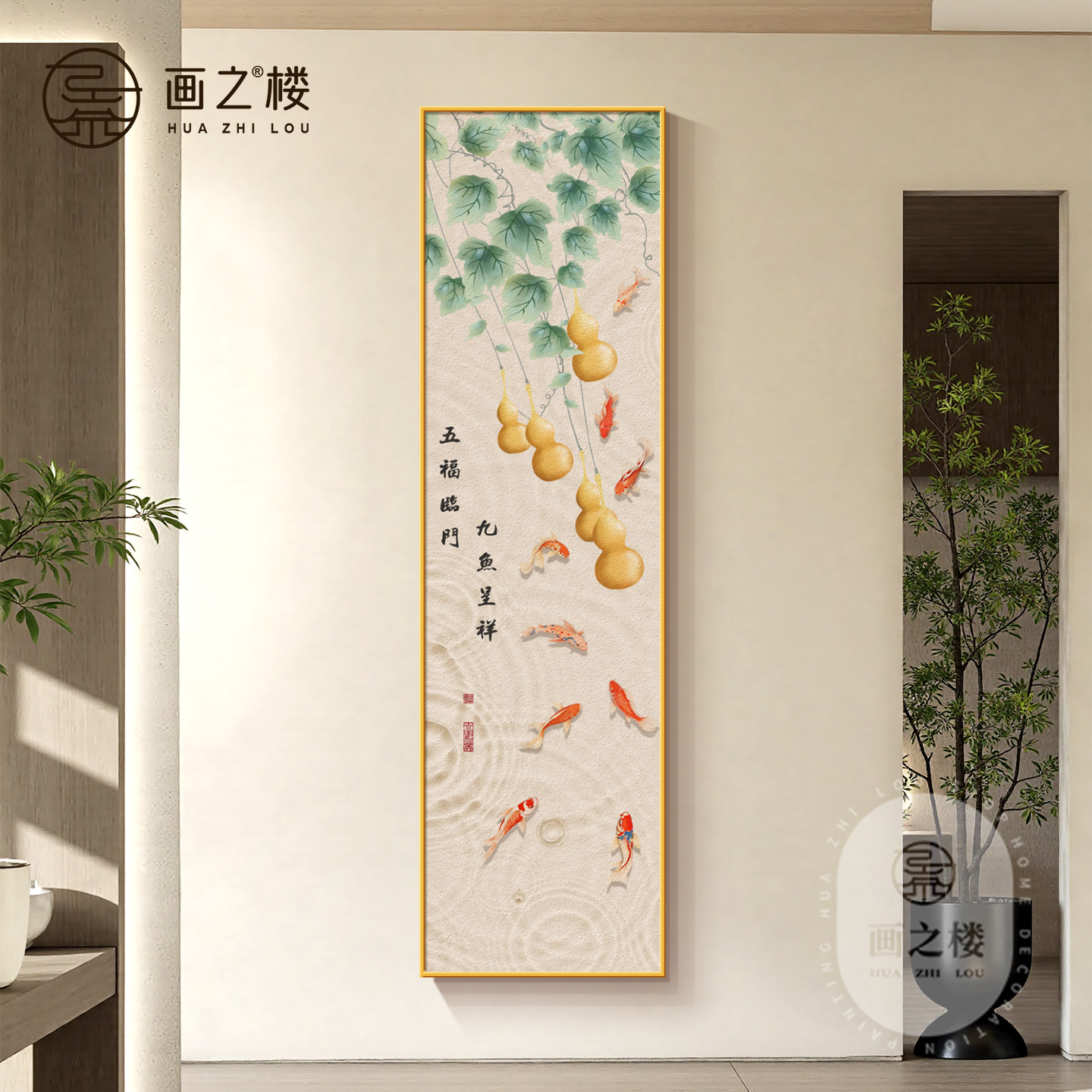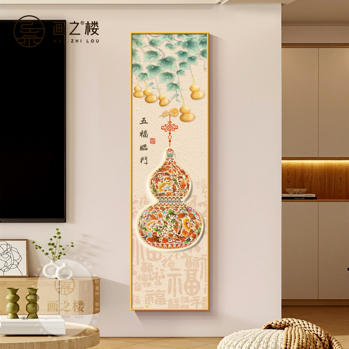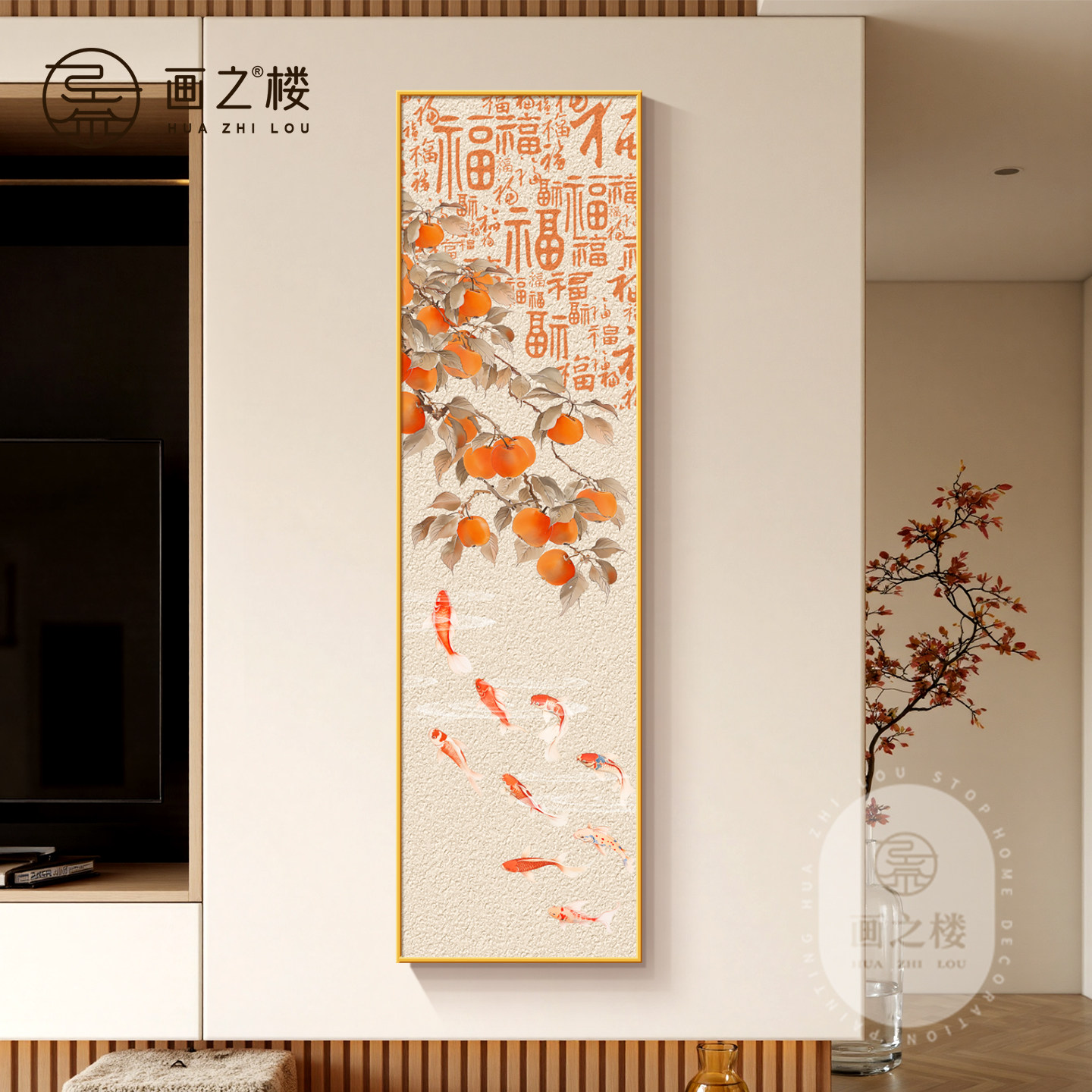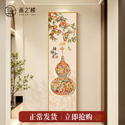 葫芦福字入户玄关装饰画窄长条竖版壁画柿柿如意走廊过道尽头挂画