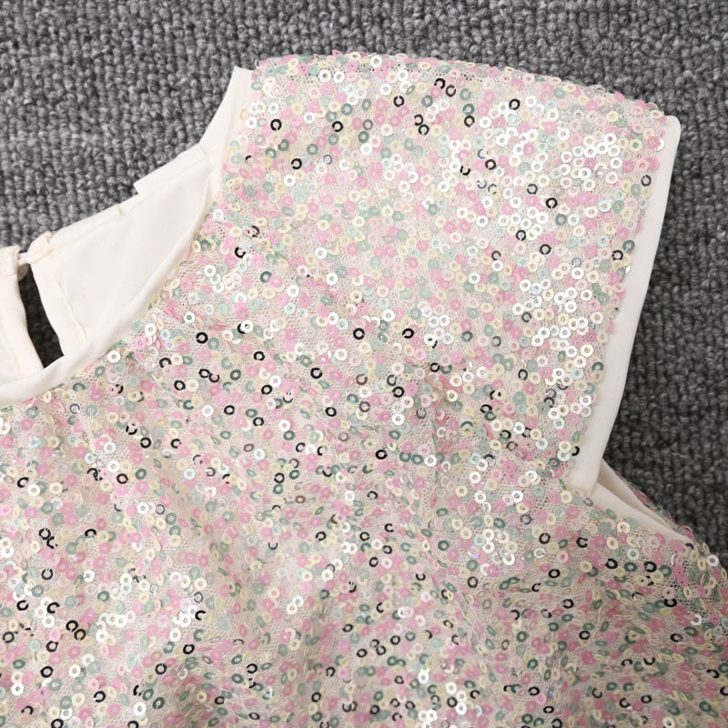 H家外贸欧美 女宝春夏公主裙子 女童甜美连衣裙亮片裙无袖背心裙