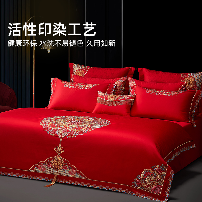南方寝饰纯棉大红刺绣新婚四件套