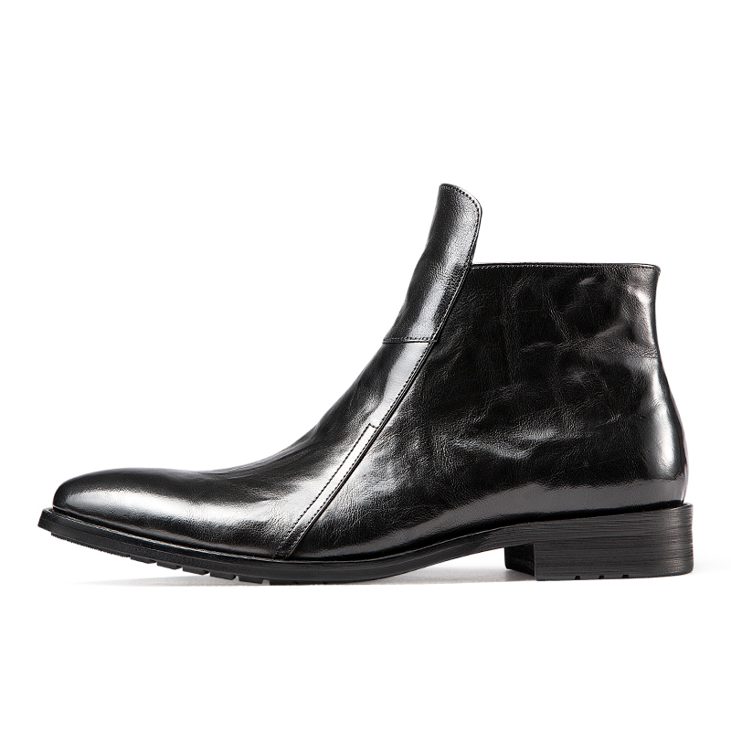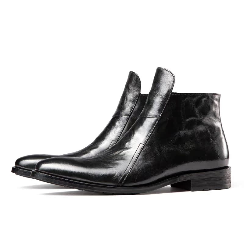 冬季新款马丁靴男真皮商务高帮皮鞋尖头皮靴切尔西靴加绒保暖短靴