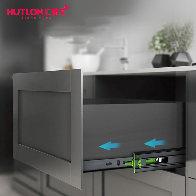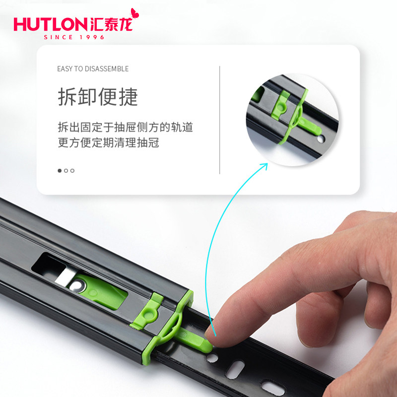汇泰龙反弹抽屉轨道滑道一按即开式三节轨道滑轨静音导轨