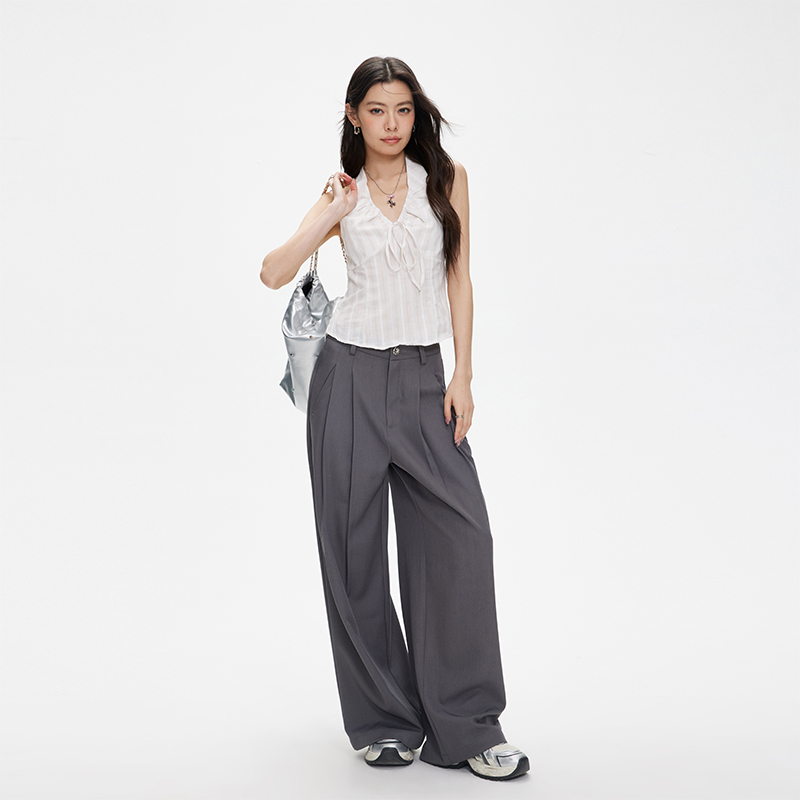 【蜜蜂欢乐社】夏季薄款阔腿休闲西装裤 宽松直筒 慵懒简约高级感
