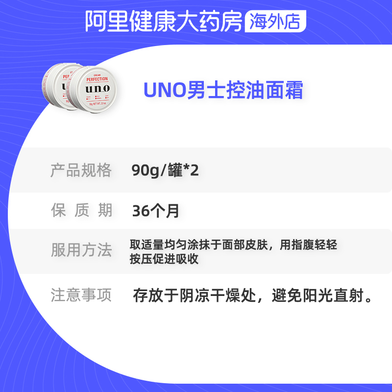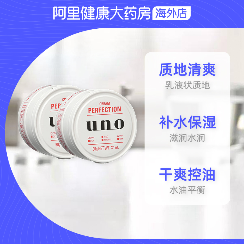 日本UNO吾诺男士多效合一控油补水高保湿凝露面霜90g*2正品护肤品