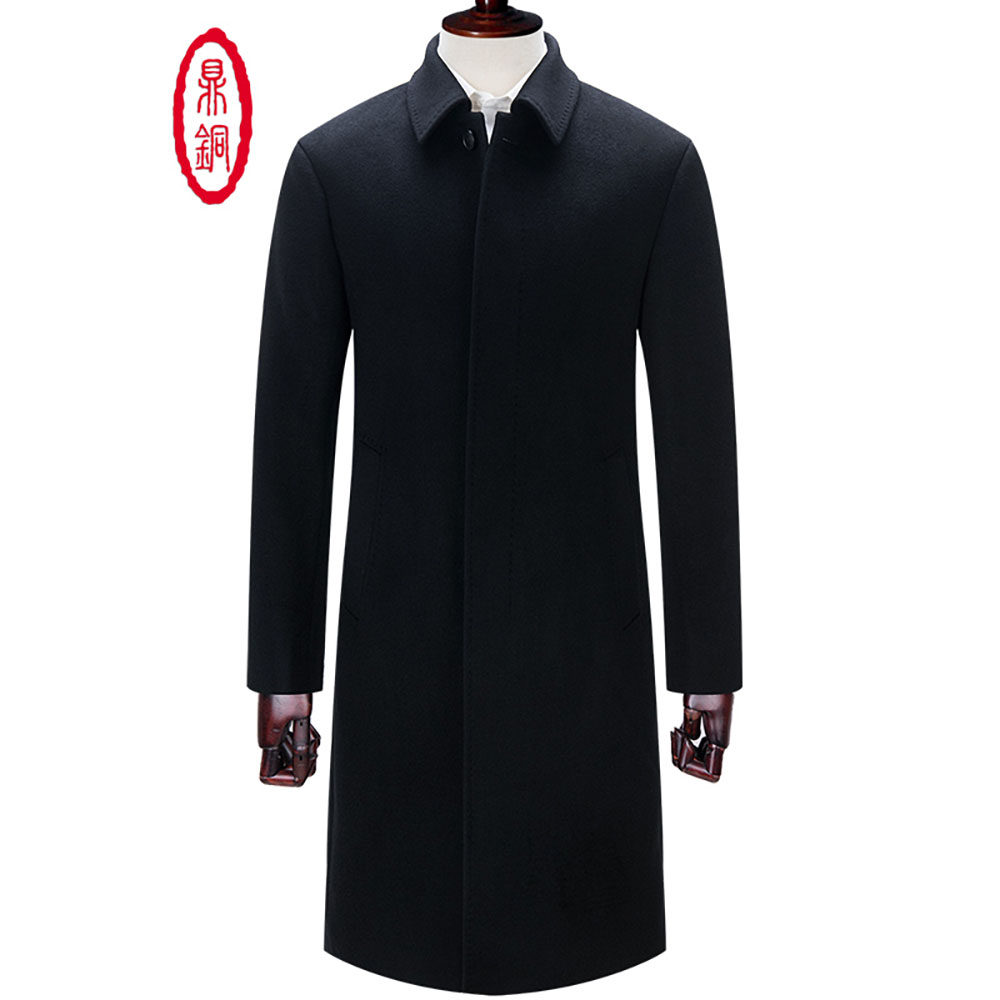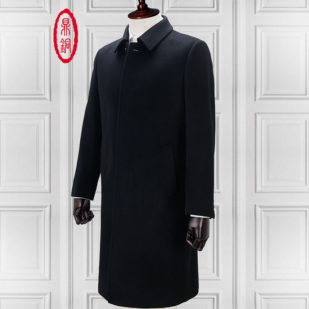 鼎铜羊毛大衣男长款翻领高端新