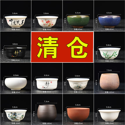 陶瓷茶杯单个主人杯功夫茶大号斗笠品茗杯玻璃杯喝茶杯冰裂小茶杯