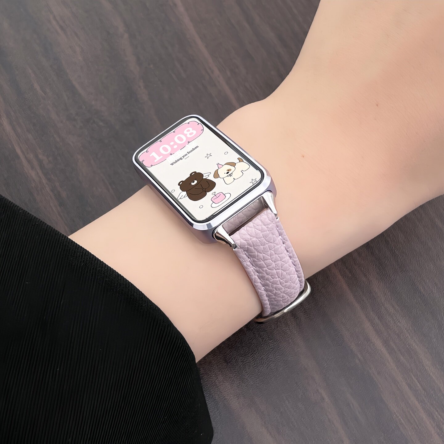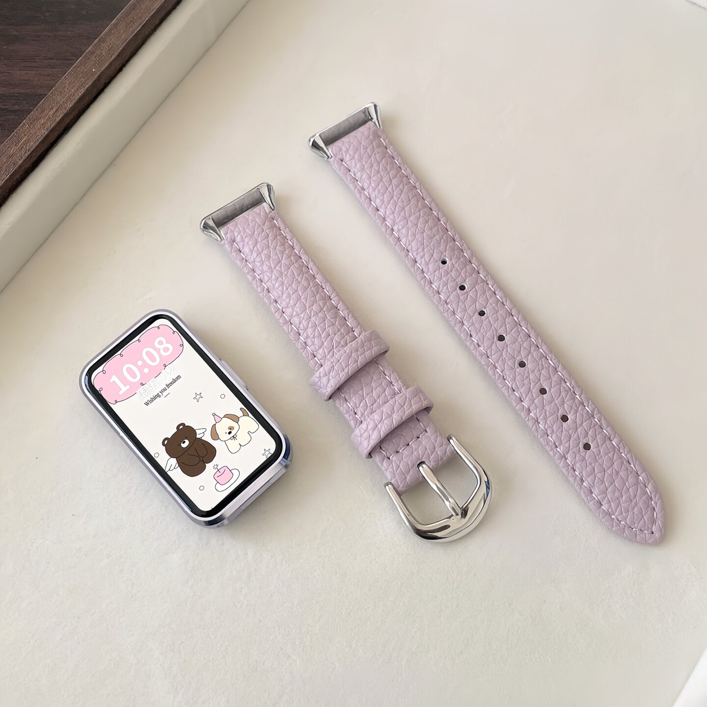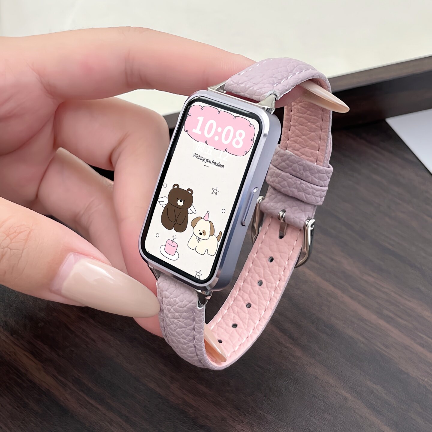 适用华为手环荔枝纹皮质秋冬表带
