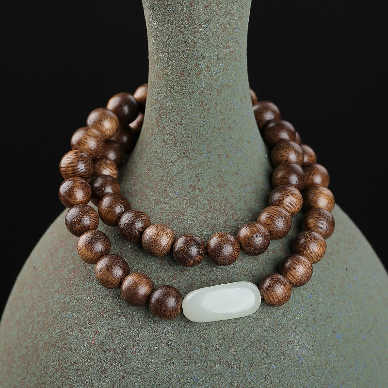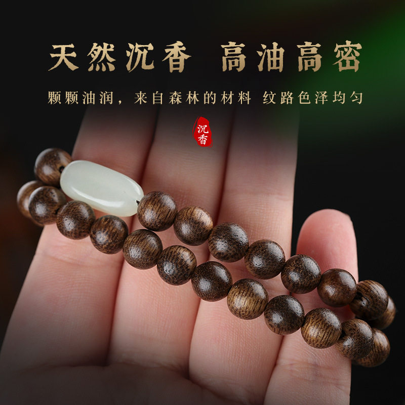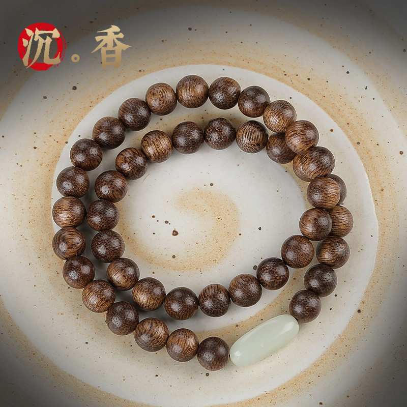 沉香木佛珠复古双圈手串紫檀木质念珠男女士款玉石转运珠手链礼物
