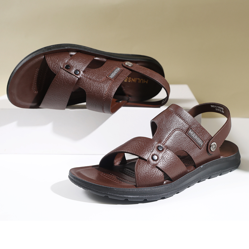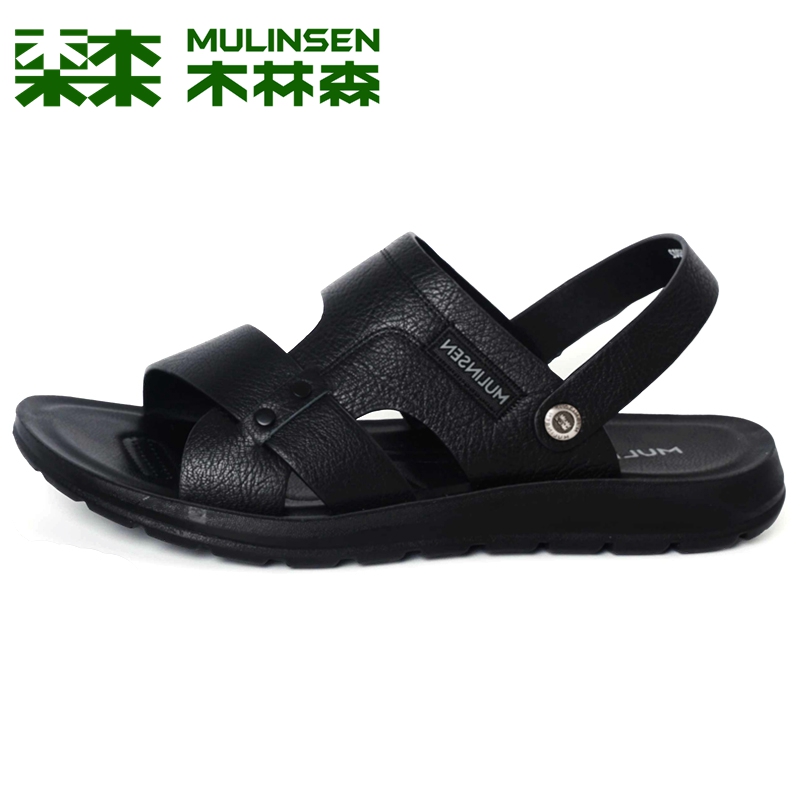 木林森凉鞋男士夏季休闲爸爸鞋舒适露趾防滑凉拖鞋头层牛皮沙滩鞋