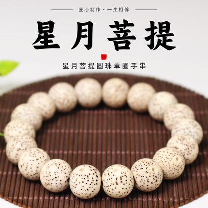 星月菩提手串佛珠文玩圆珠单圈手链男女情侣饰品顺白高密未脱脂