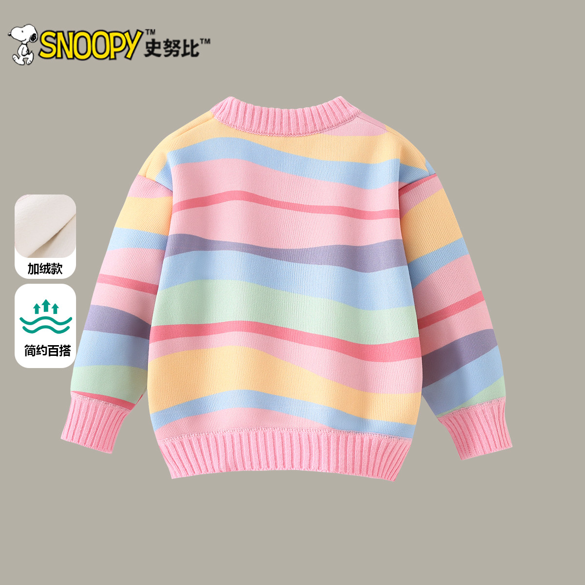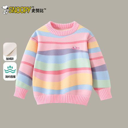 史努比女童毛衣2025秋冬新款儿童加绒保暖针织衫女孩冬季套头上衣