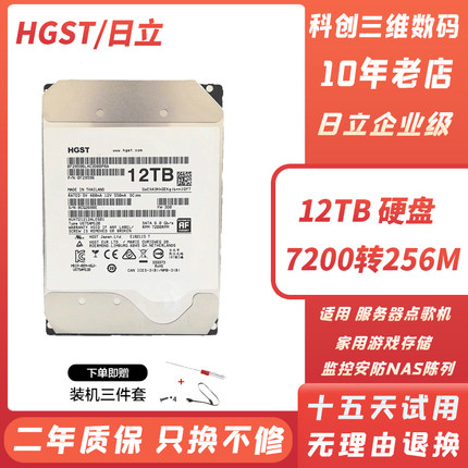 日立12T机械硬盘氦气企业级NAS监控12TB台式机7200转256M缓存SATA
