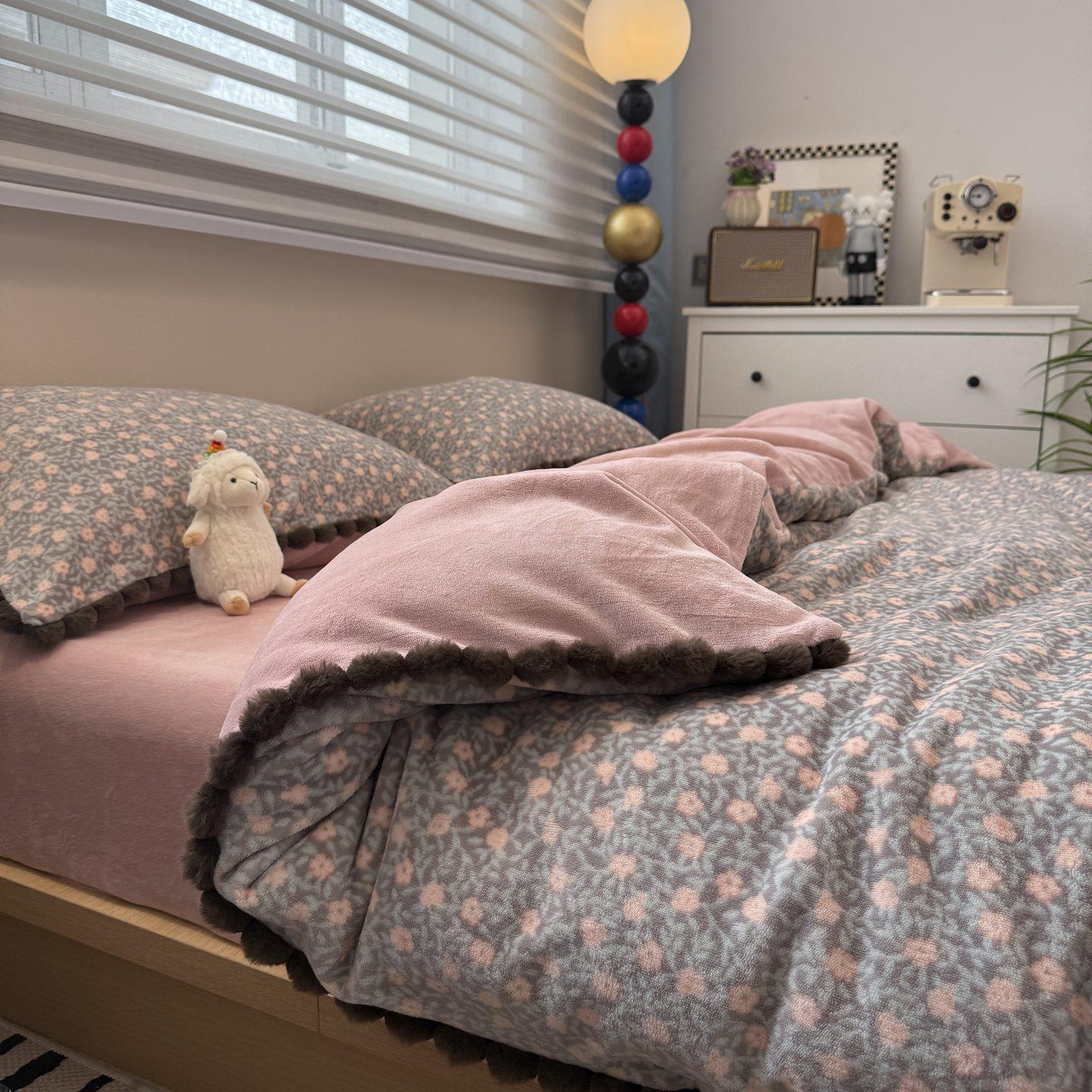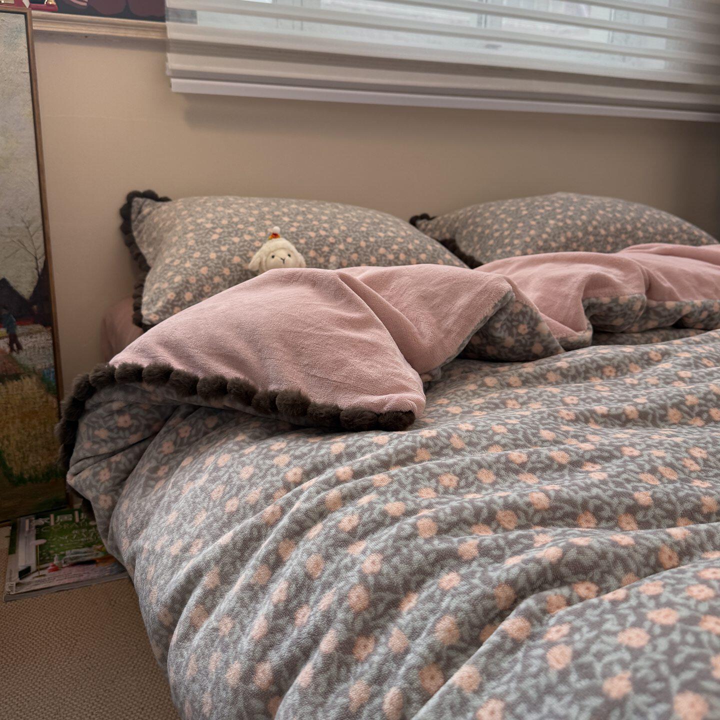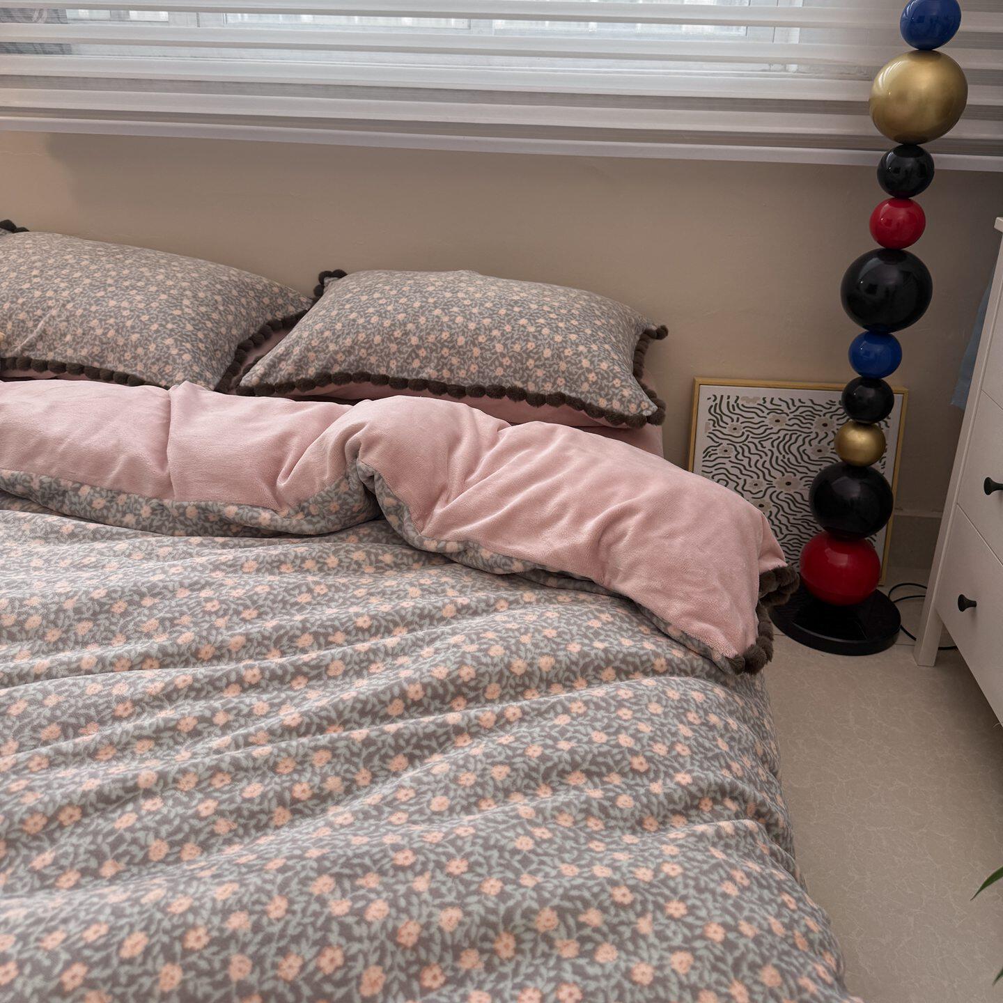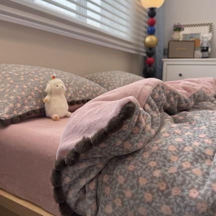 公主风花边款牛奶绒床上四件套珊瑚绒法兰绒保暖三件套秋冬季床品
