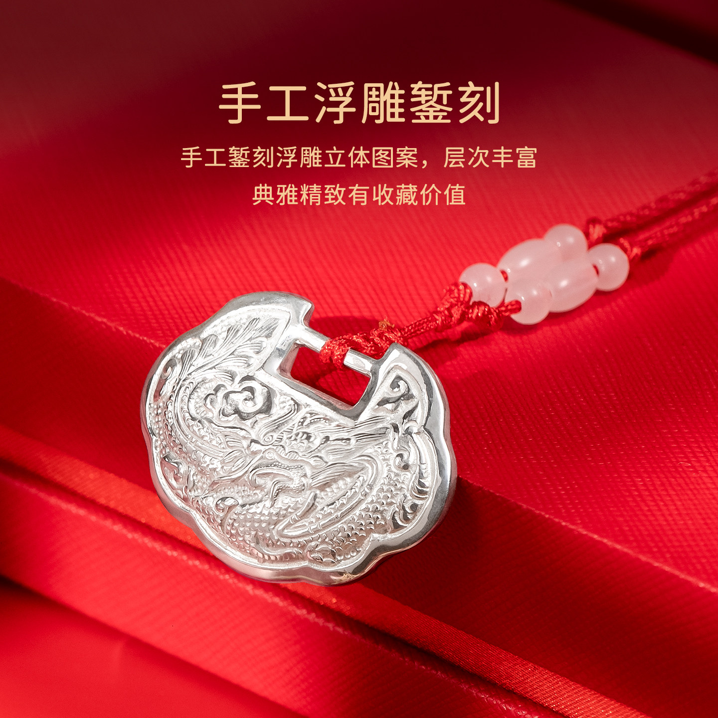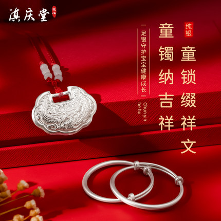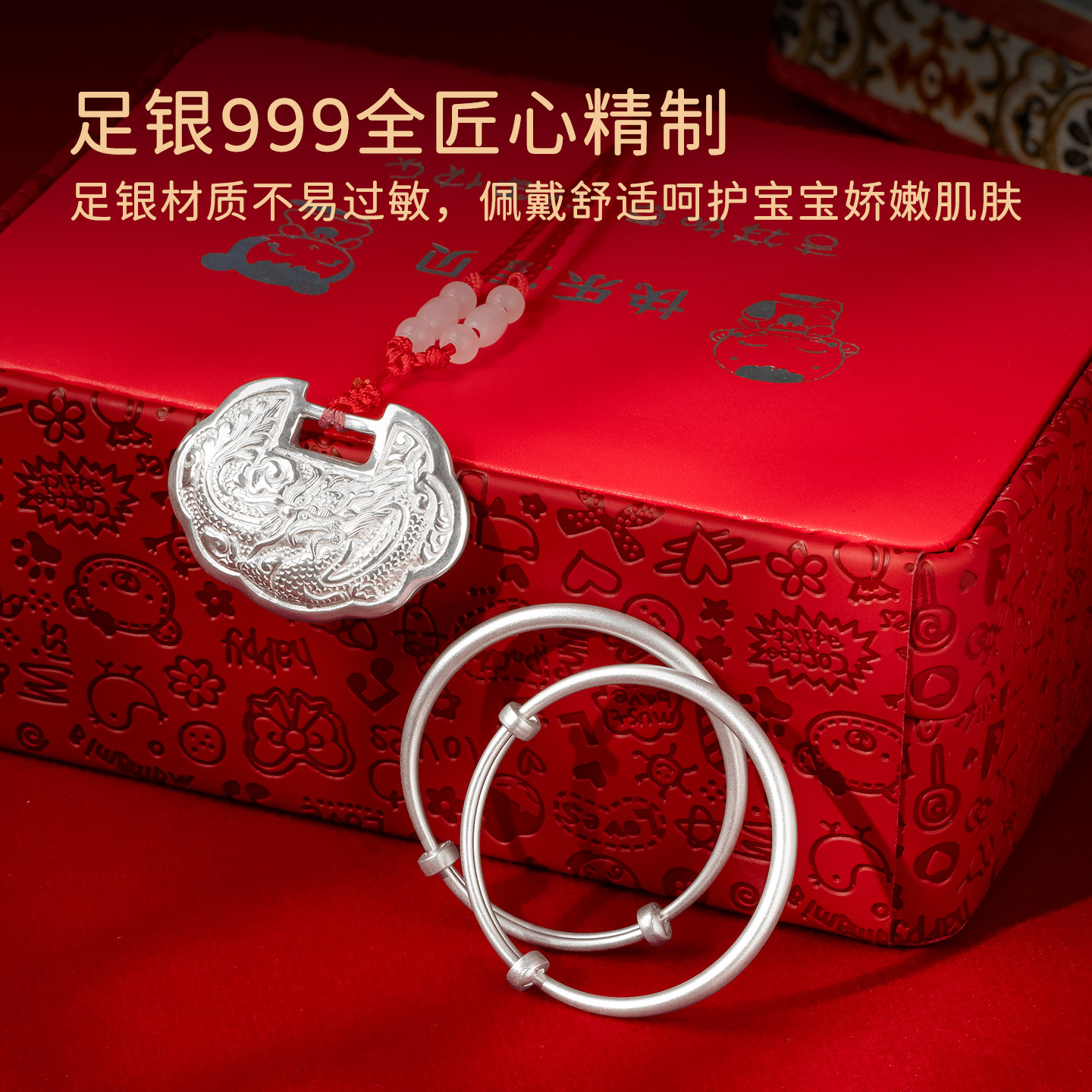 宝宝银手镯999纯银长命锁平安锁足银儿童手镯套装满月周岁送礼