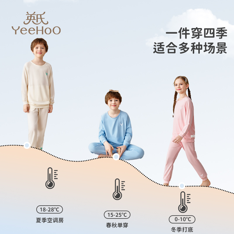 英氏儿童睡衣男童女童内衣套装2025春秋款男孩女孩学生长袖家居服
