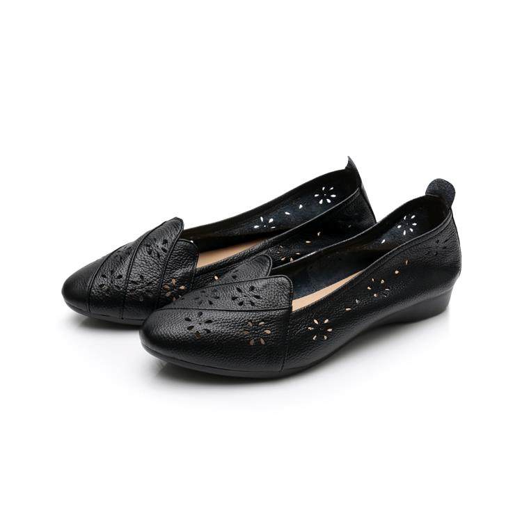 高档新款真皮镂牛空鞋平跟包头软凉鞋单女筋底中老年舒适春夏妈妈