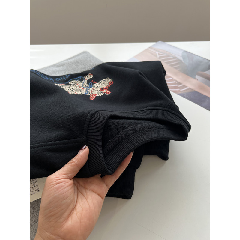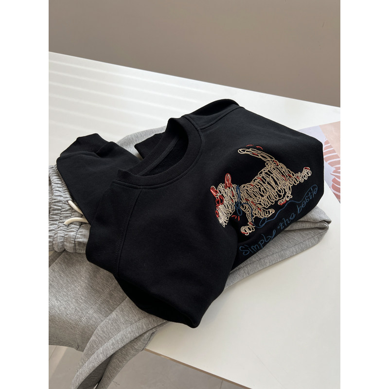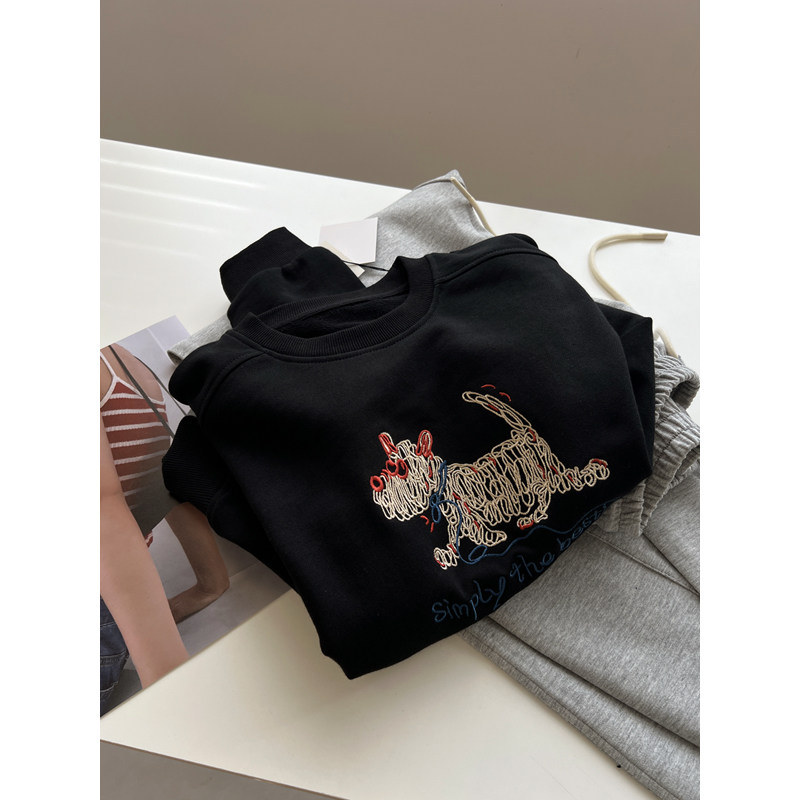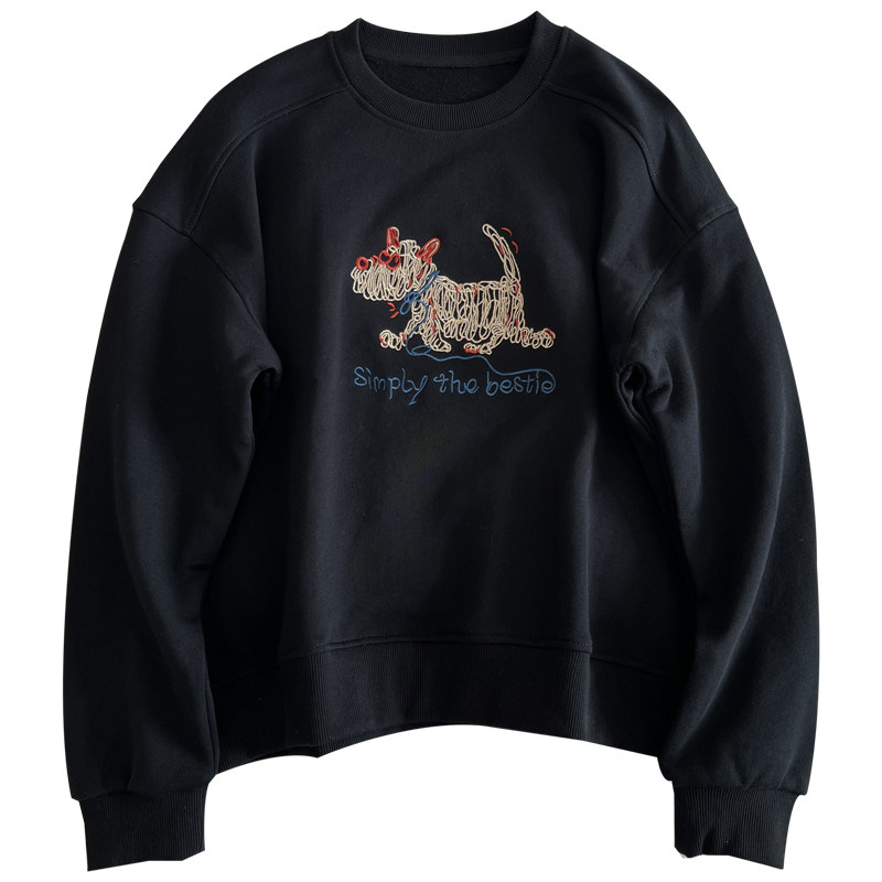 小狗刺绣圆领套头卫衣女宽松棉质