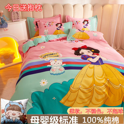 迪士尼卡通加厚纯棉四件套100全棉磨毛可爱男女孩儿童床单笠被套