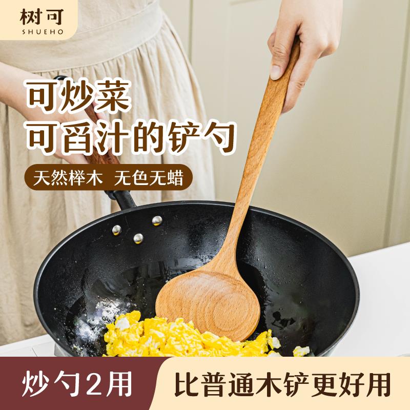 树可木锅铲蘑菇铲长木柄不粘锅专用家用食品级榉木炒菜勺铲子木铲
