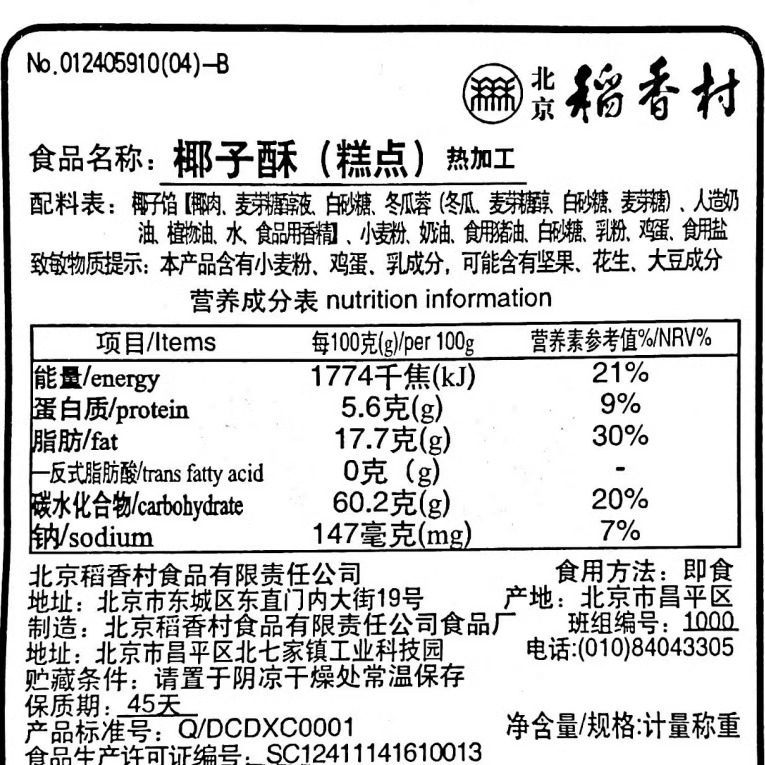 4块北京三禾稻香村糕点心散装椰子酥特产零食小吃蛋糕真空