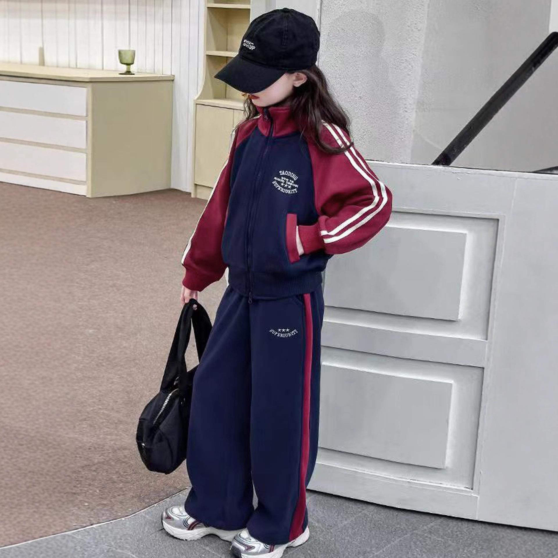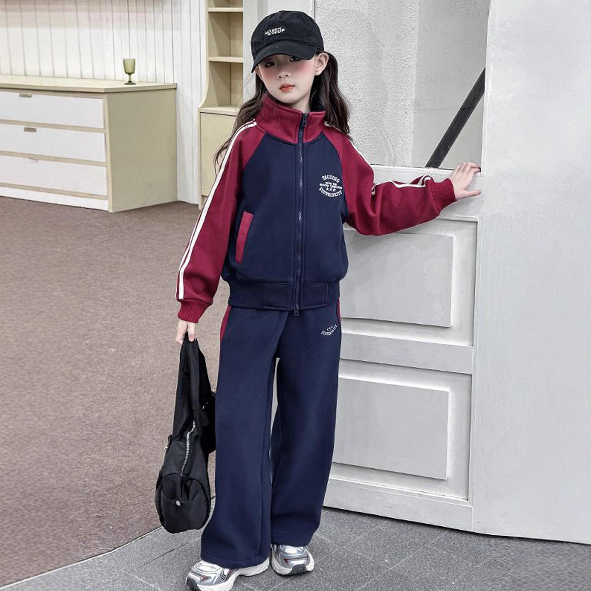 2025秋冬女童加绒运动套装休闲洋气女大童款卫衣卫裤小女孩棒球服
