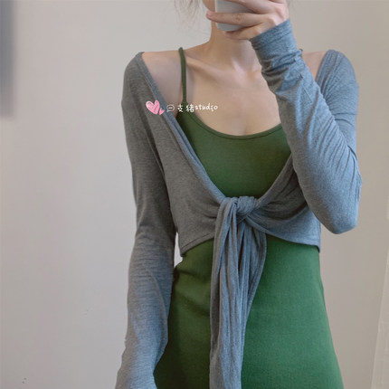 绑带开衫女夏季配裙子外搭薄款罩衫披肩短款防晒衣外套芭蕾舞蹈服