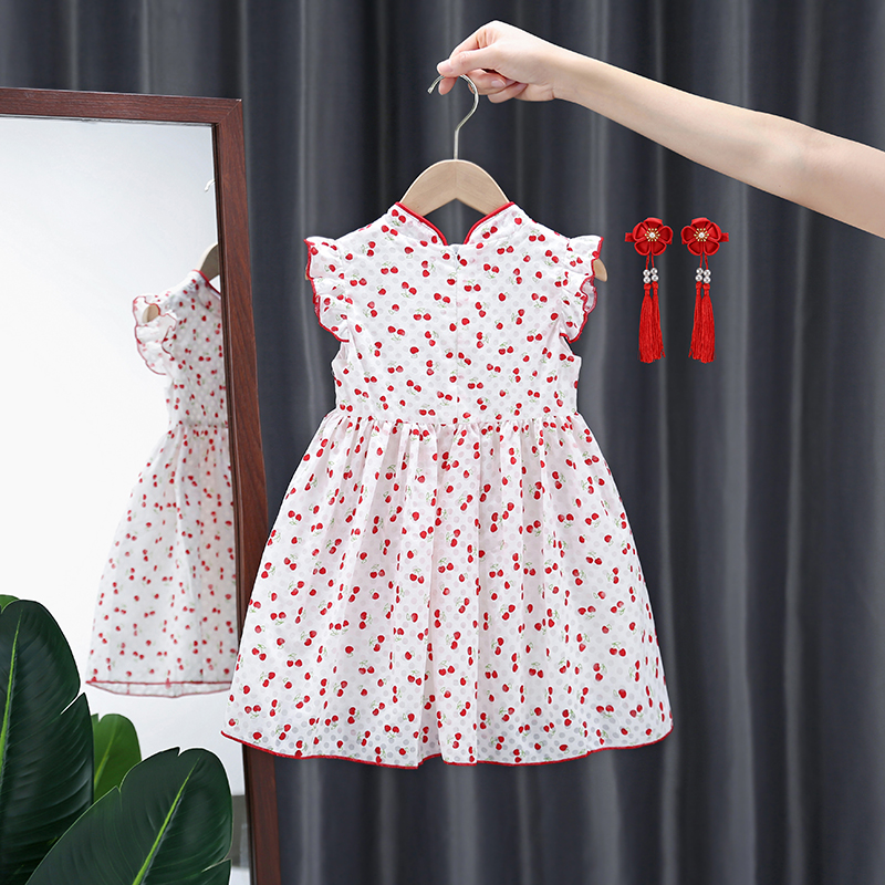 女童夏装2023新款洋气连衣裙儿童宝宝汉服网红旗袍夏季樱桃裙子夏