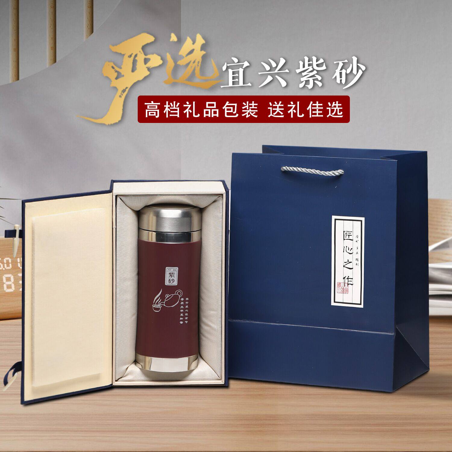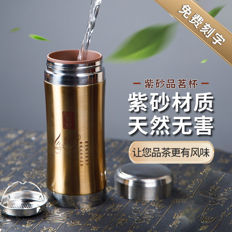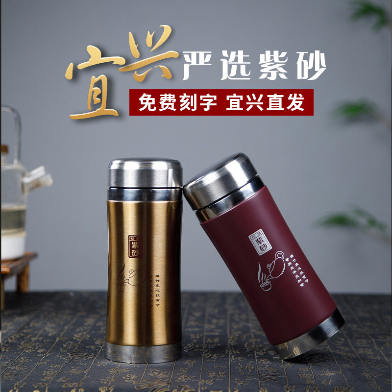 紫砂内胆保温杯大容量泡茶杯男士款高档商务纪念礼品水杯定制刻字