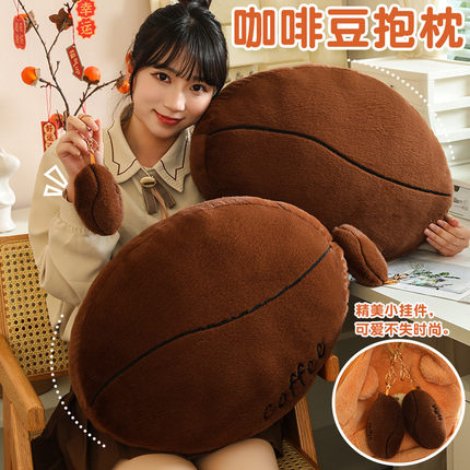 仿真咖啡豆抱枕新品趣味咖啡豆钥匙扣包包挂件毛绒靠垫背安抚玩偶