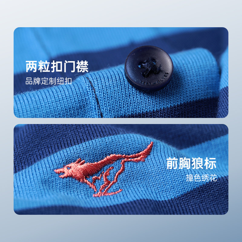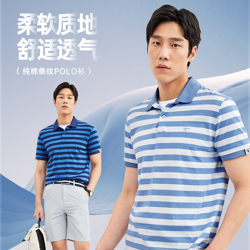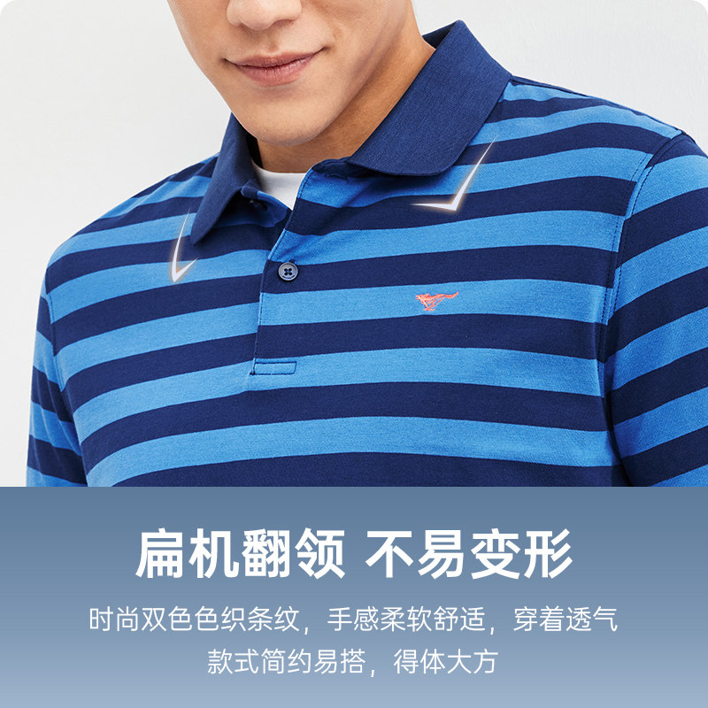 [100%棉]七匹狼翻领条纹商务短袖T恤夏季显瘦亲肤舒适透气polo衫