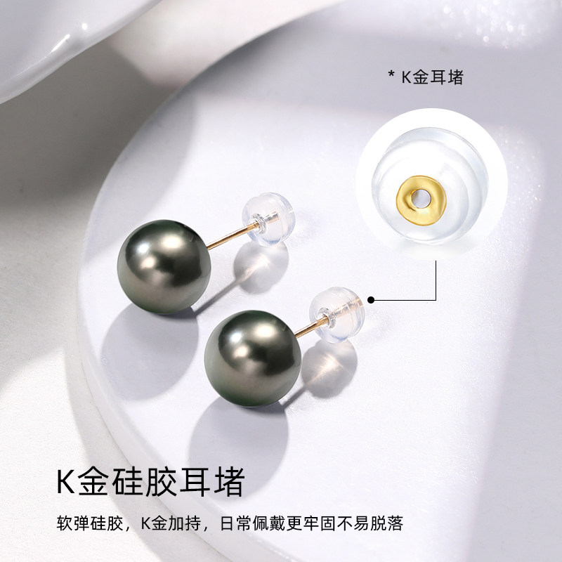 HESHA大溪地黑珍珠耳钉18K金海水珍珠耳饰正圆强光时尚珠宝高级感