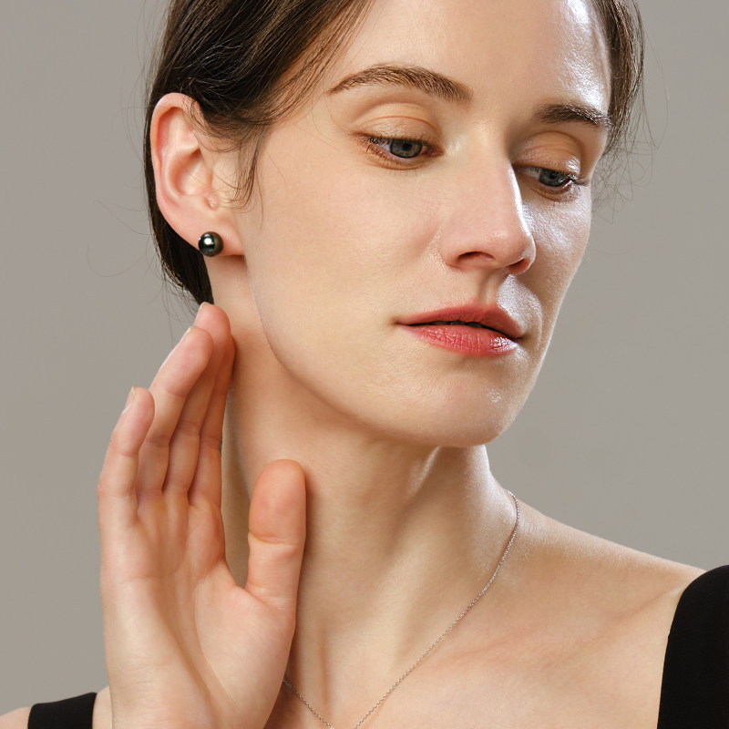 大溪地黑珍珠耳钉高级感耳饰
